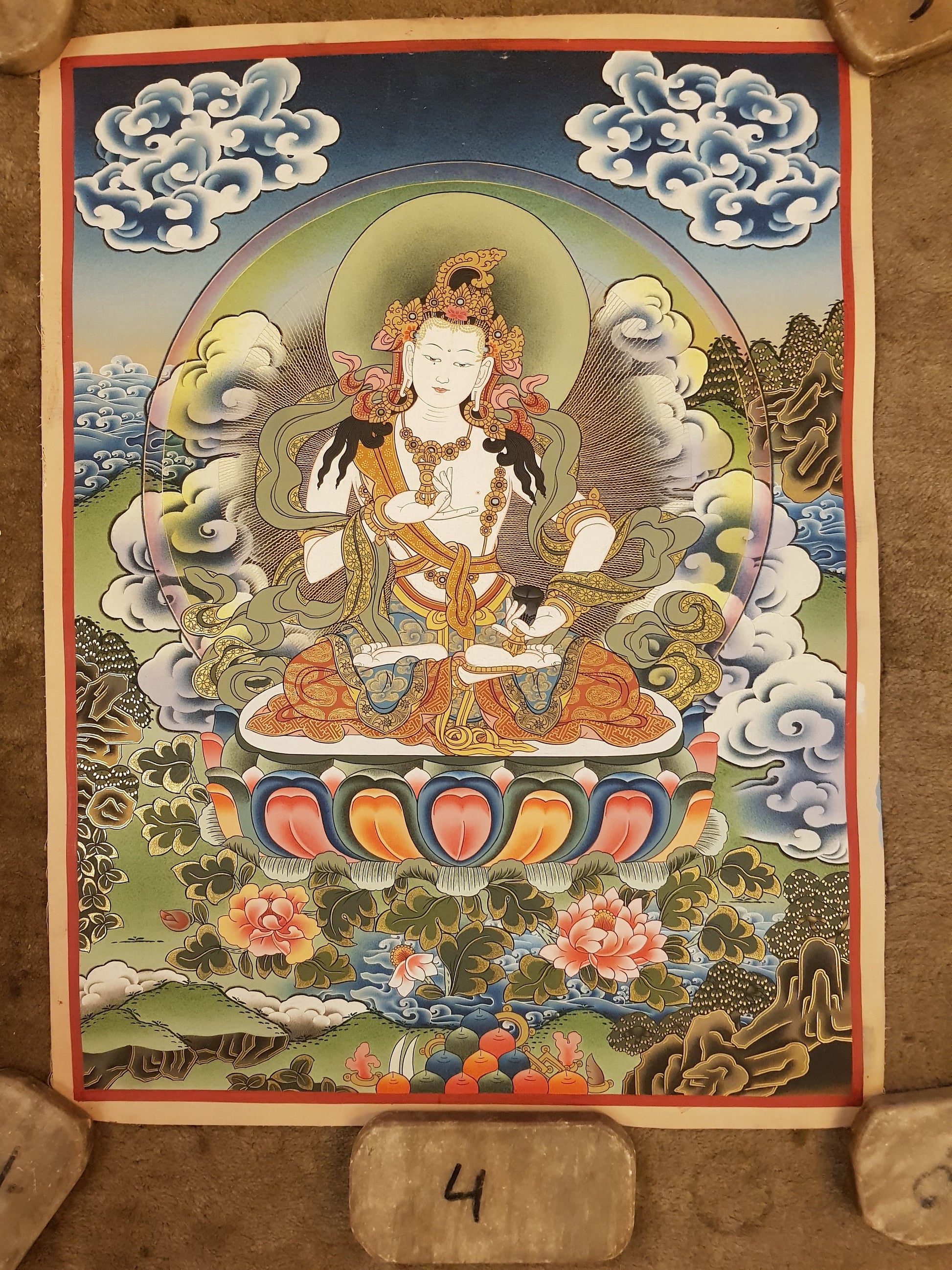 132. Vajrasattva Tibetan Thangka (Thanka) Painting. Free Brocade / Free Shipping.