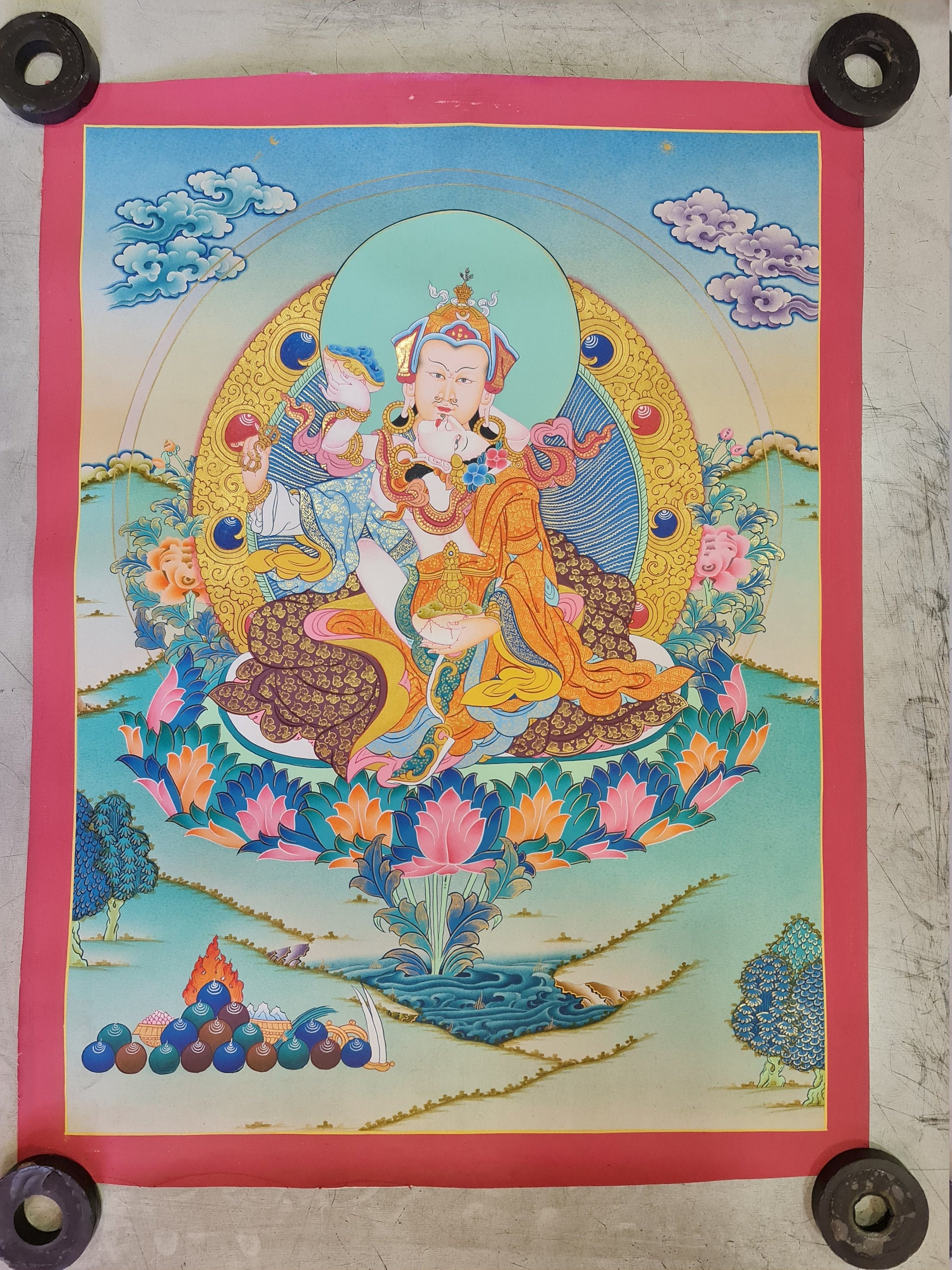 175. Guru Rinpoche Consort with Yeshe Tsogyal Thanka (Thangka). Free Brocade / Free Shipping.