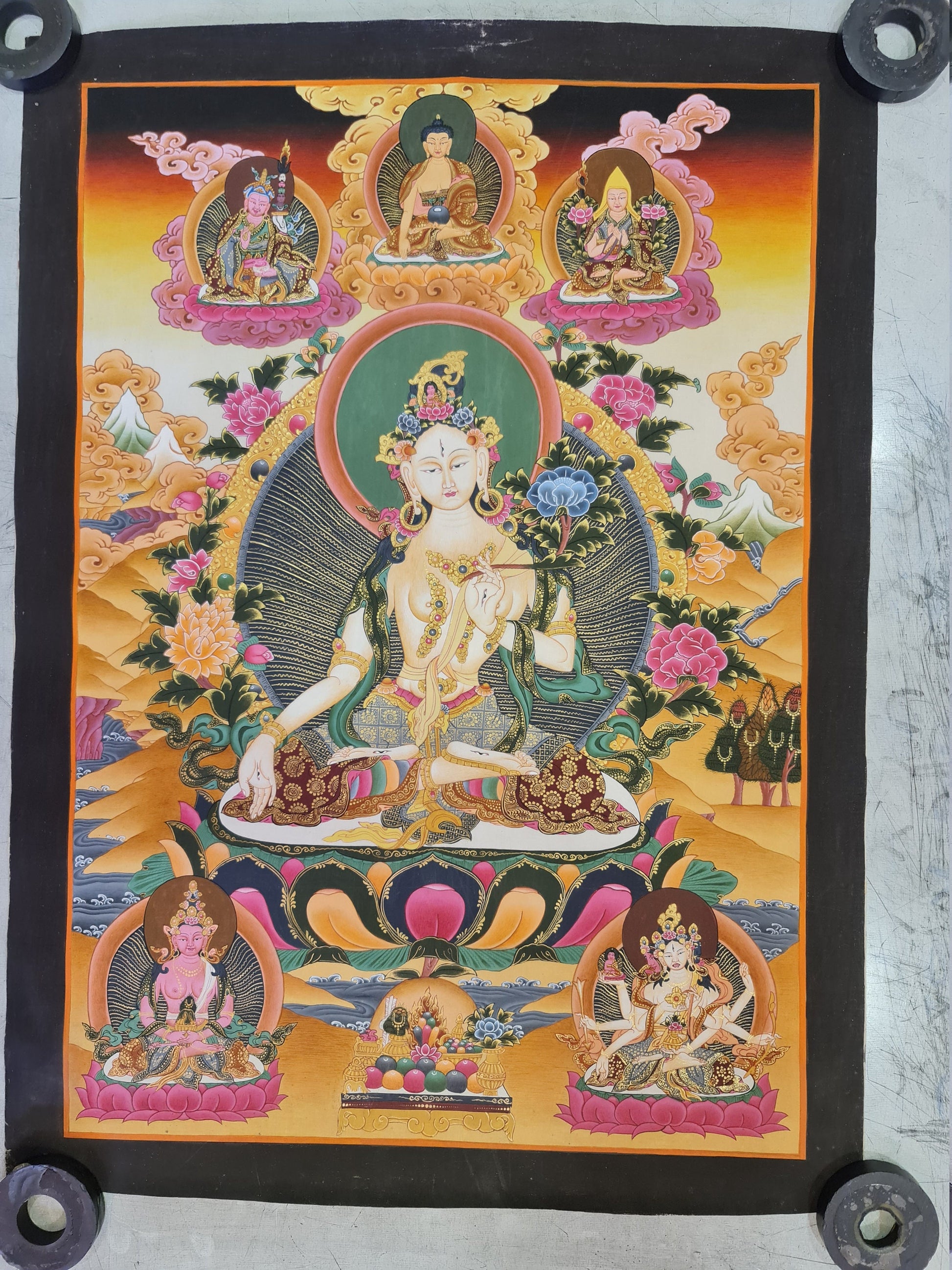 178. White Tara Thangka (Thanka). Free Brocade / Free Shipping.