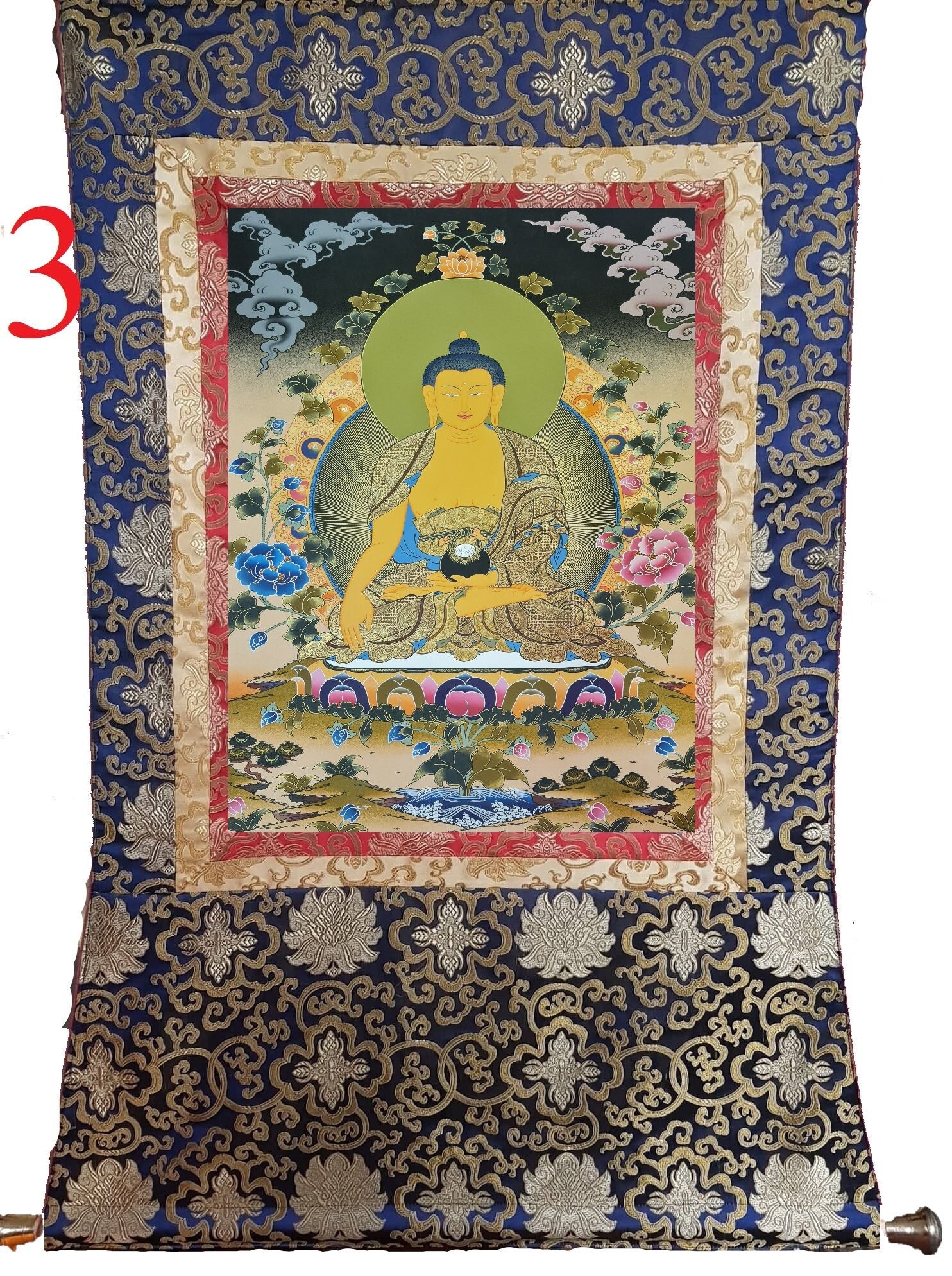 184. Shakyamuni Buddha Thangka (Thanka). Free Brocade / Free Shipping.