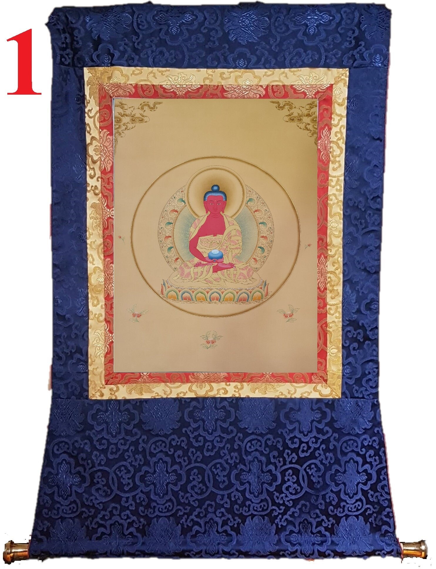 190. Amitabha Buddha Thangka (Thanka). Free Brocade / Free Shipping.