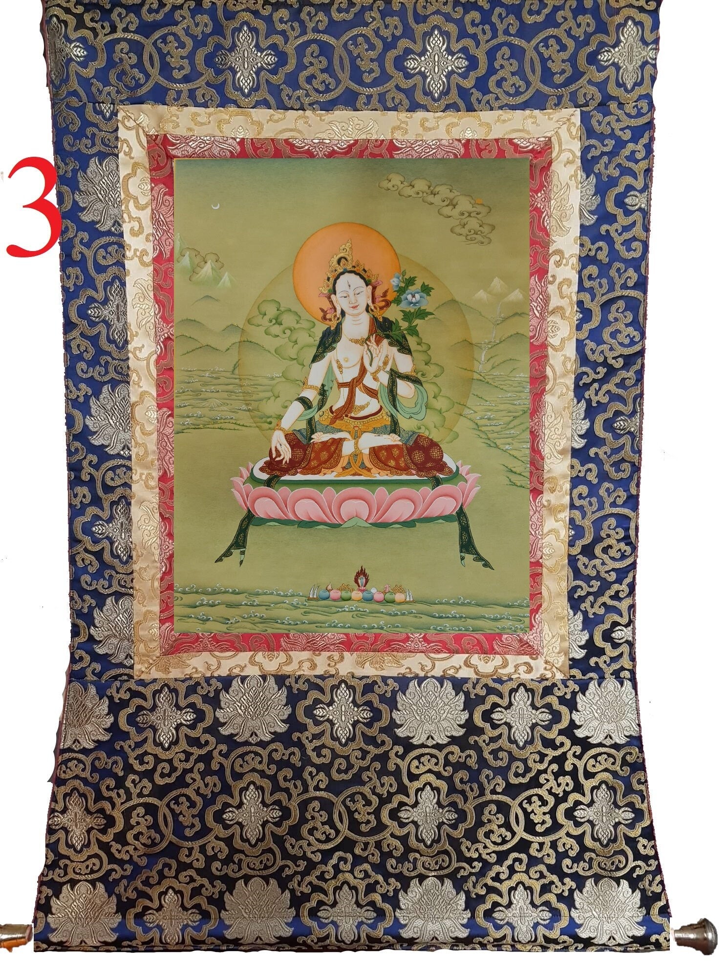 228. Karma Gadri White Tara Thangka (Thanka). Free Brocade / Free Shipping.