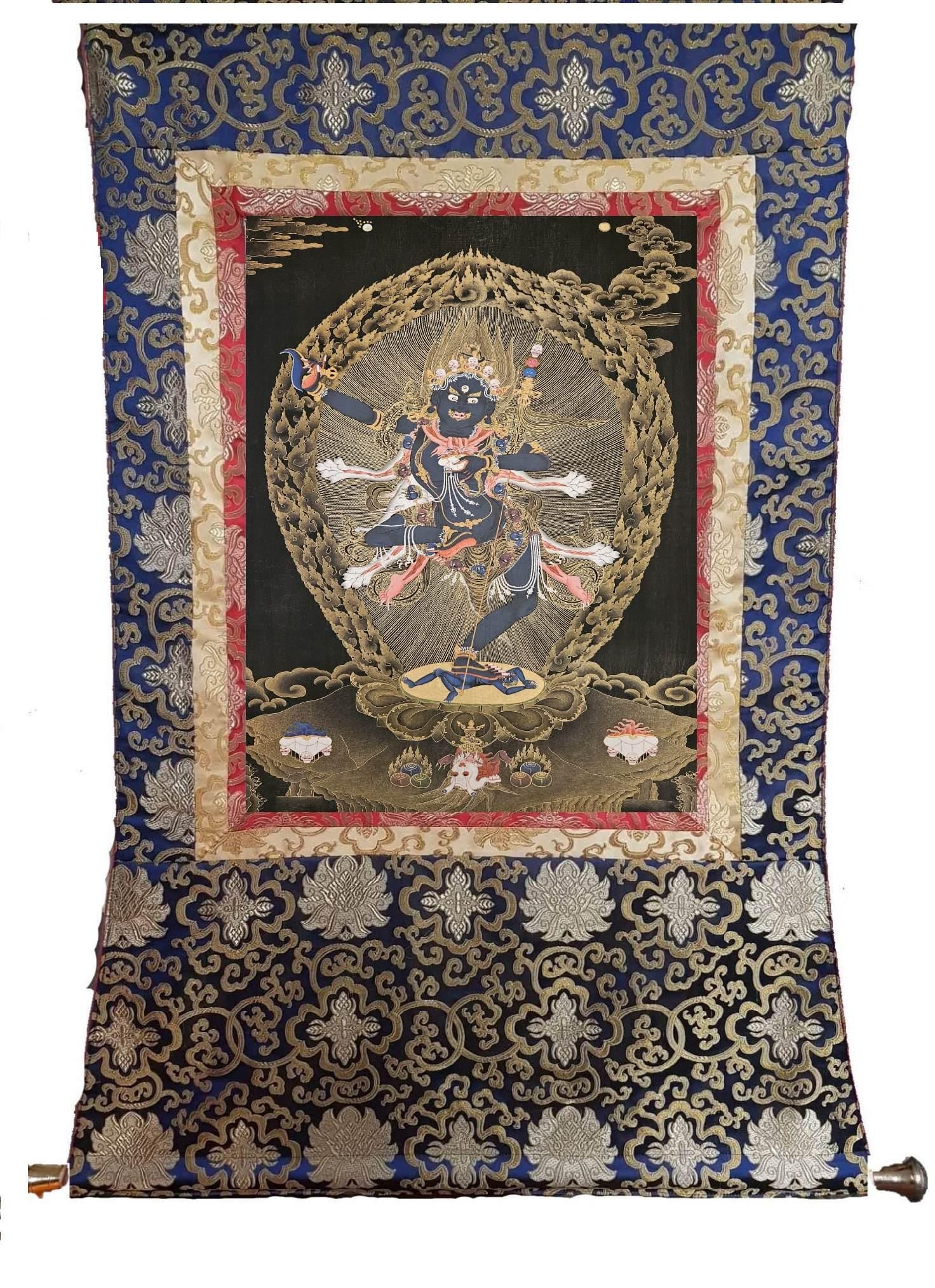 239. Troma Nagmo (Krodh Kali), the Black Wrathful Mother Thangka (Thanka). Free Brocade / Free Shipping.