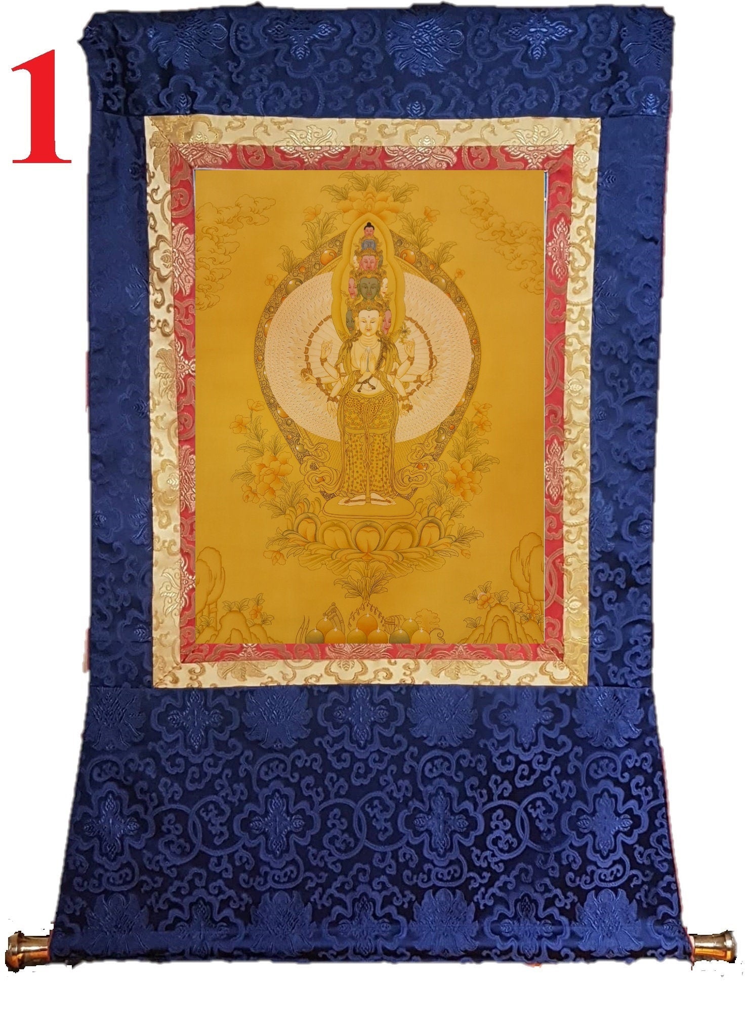 264. Large 1000 (Thousand) Arm Chenrezig Avalokiteshvara Thangka (Thanka). Free Brocade / Free Shipping.