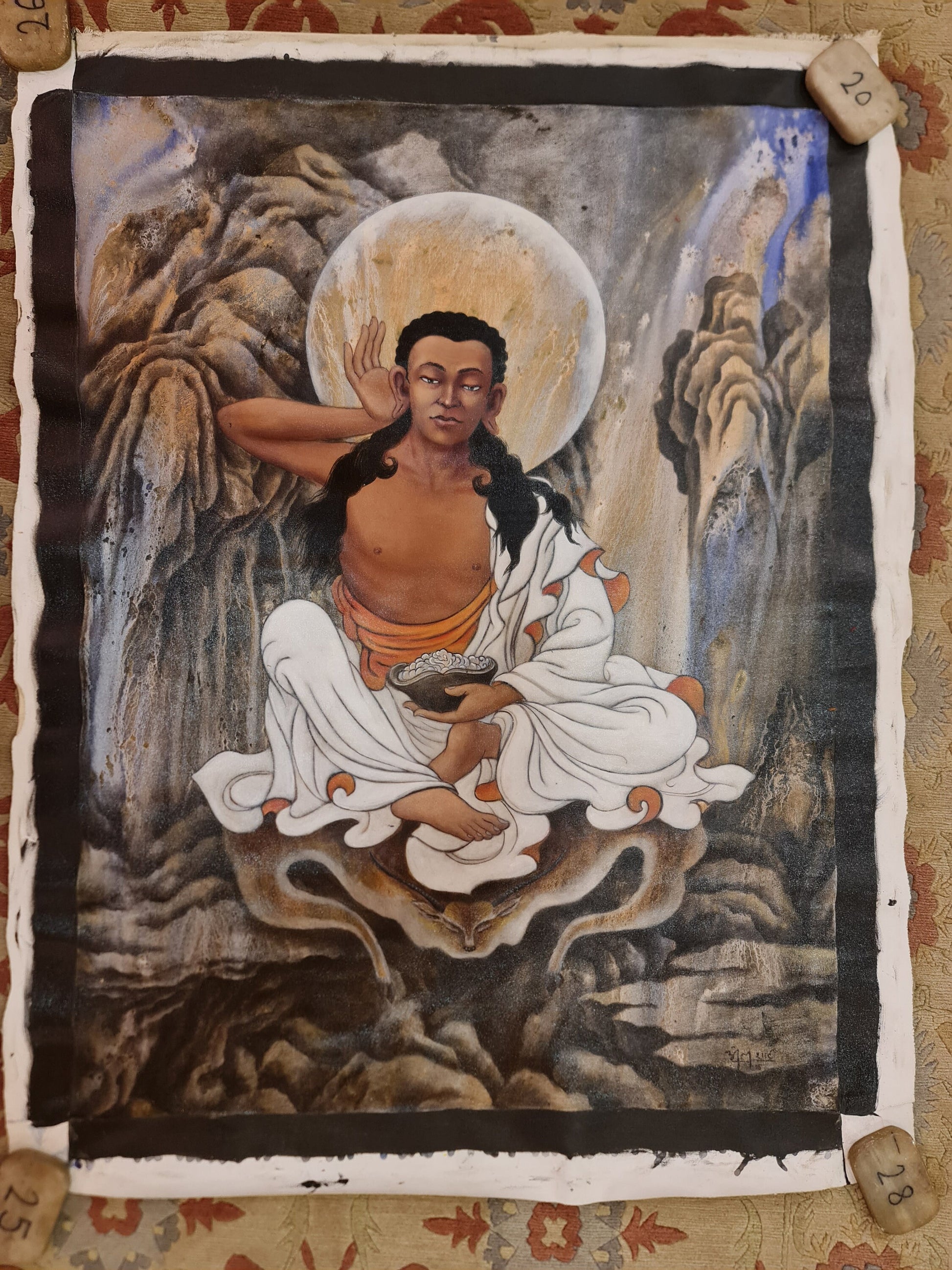 296. Newari Milarepa Thangka (Thanka) Newari Oil Painting Paubha in Canvas. Signed by the Artist. Free Shipping.