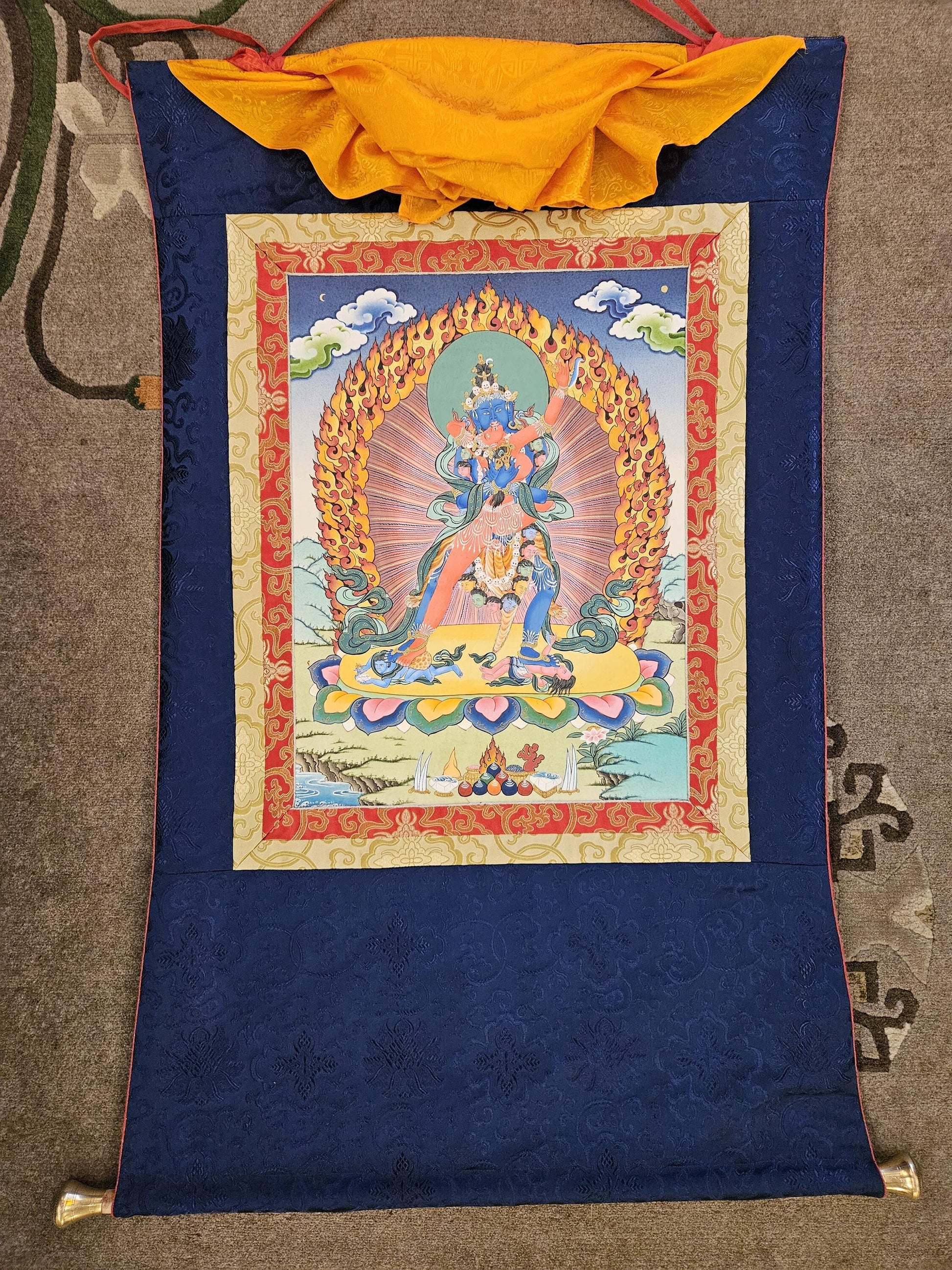 356. Two-Armed Heruka Chakrasamvara with Consort Thangka (Thanka) with Brocade. Free Shipping.