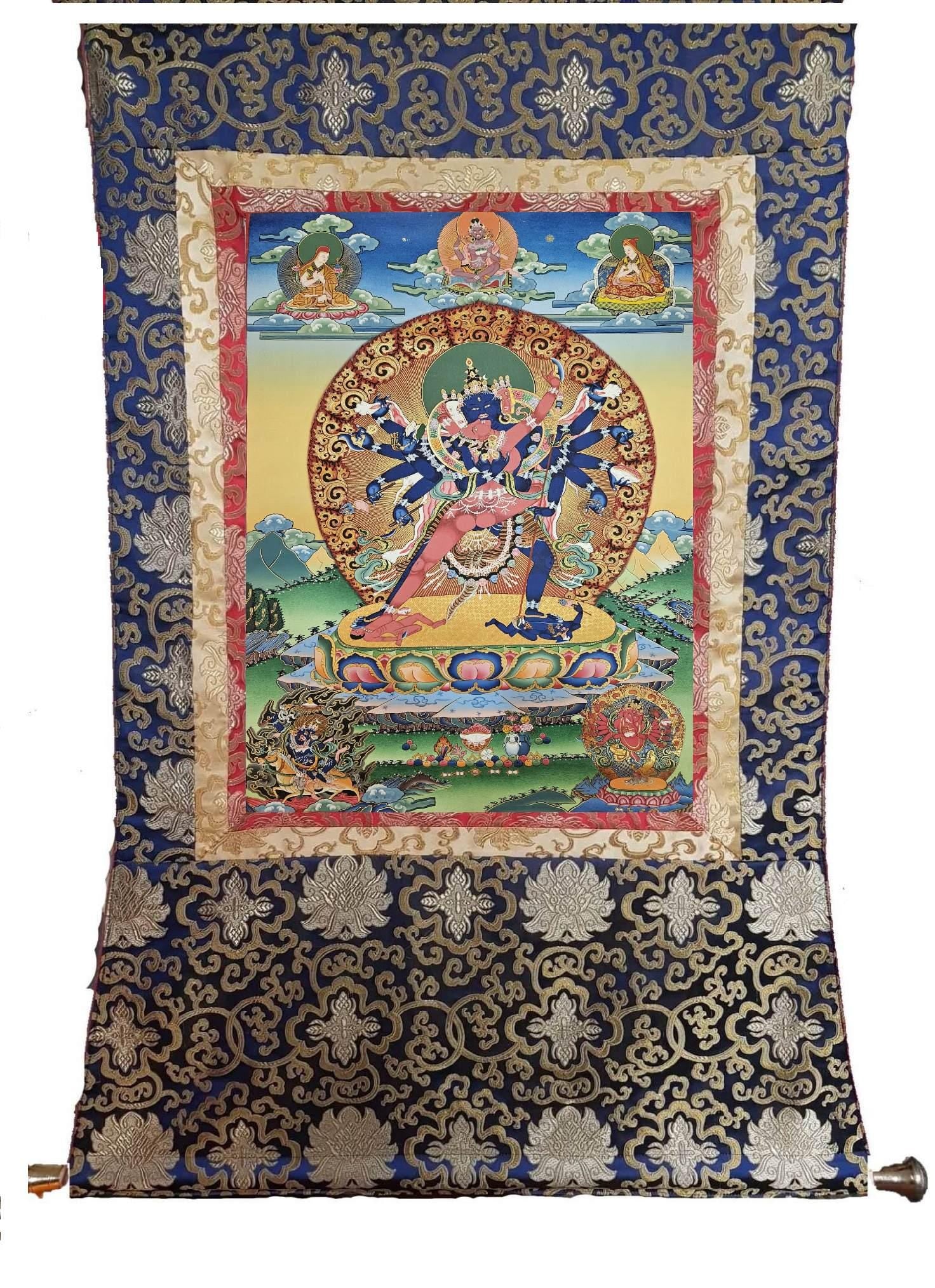 363. 12 Arm Chakrasamvara Thanka (Thangka) Painting. Free Brocade / Free Shipping.