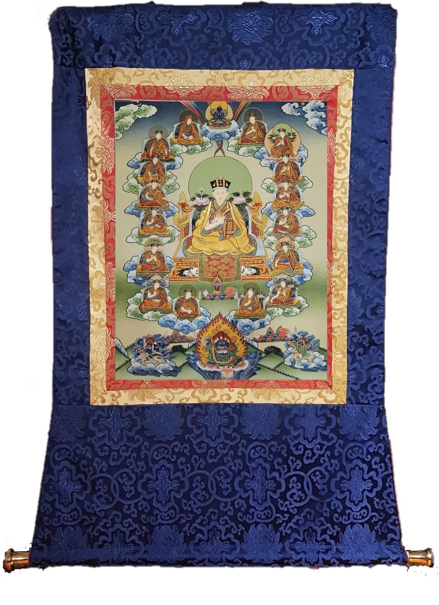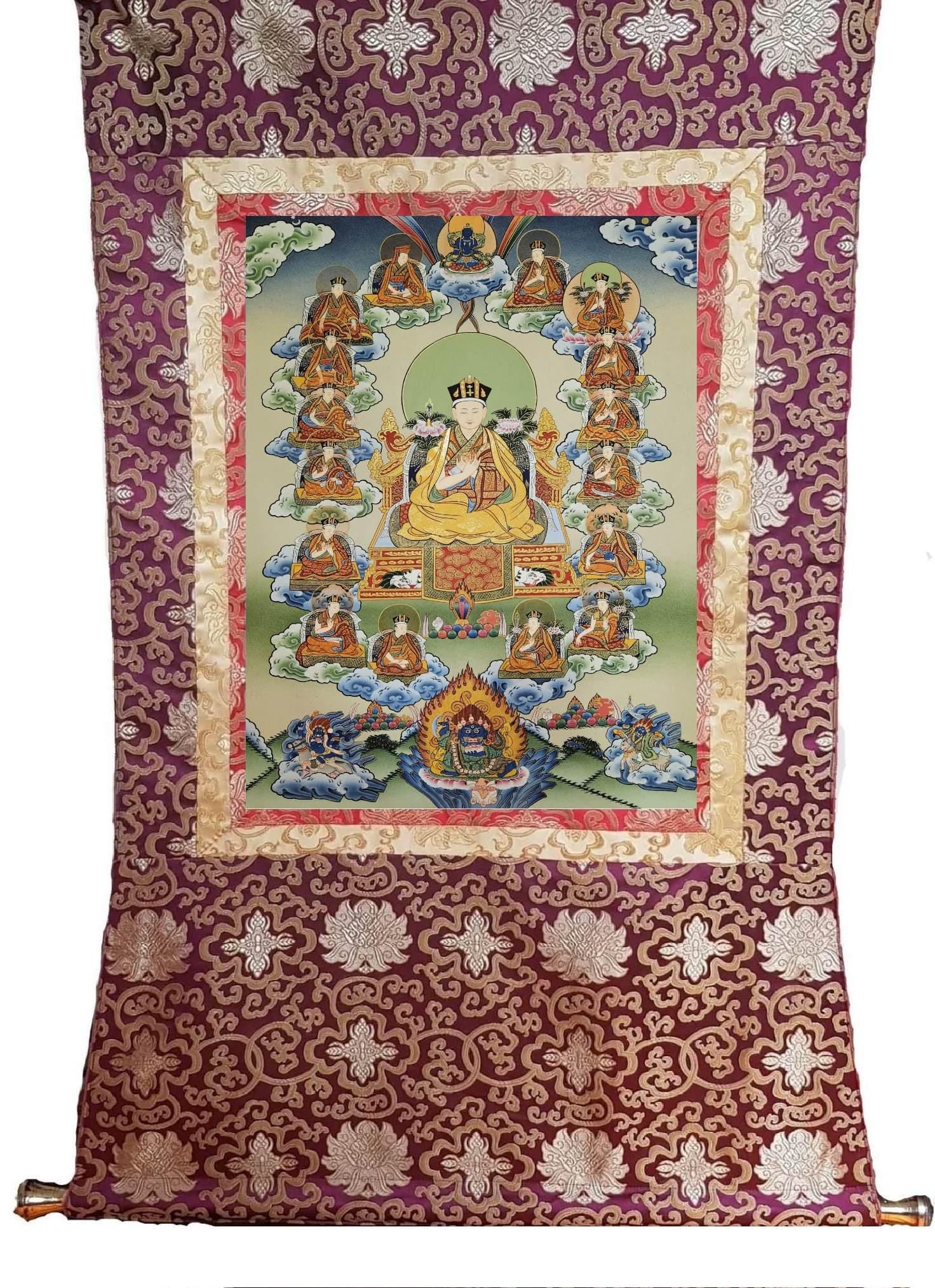 364. 16 Sixteen Gyalwa Karmapa in one Thangka Karma Kagyu. Free Brocade / Free Shipping.