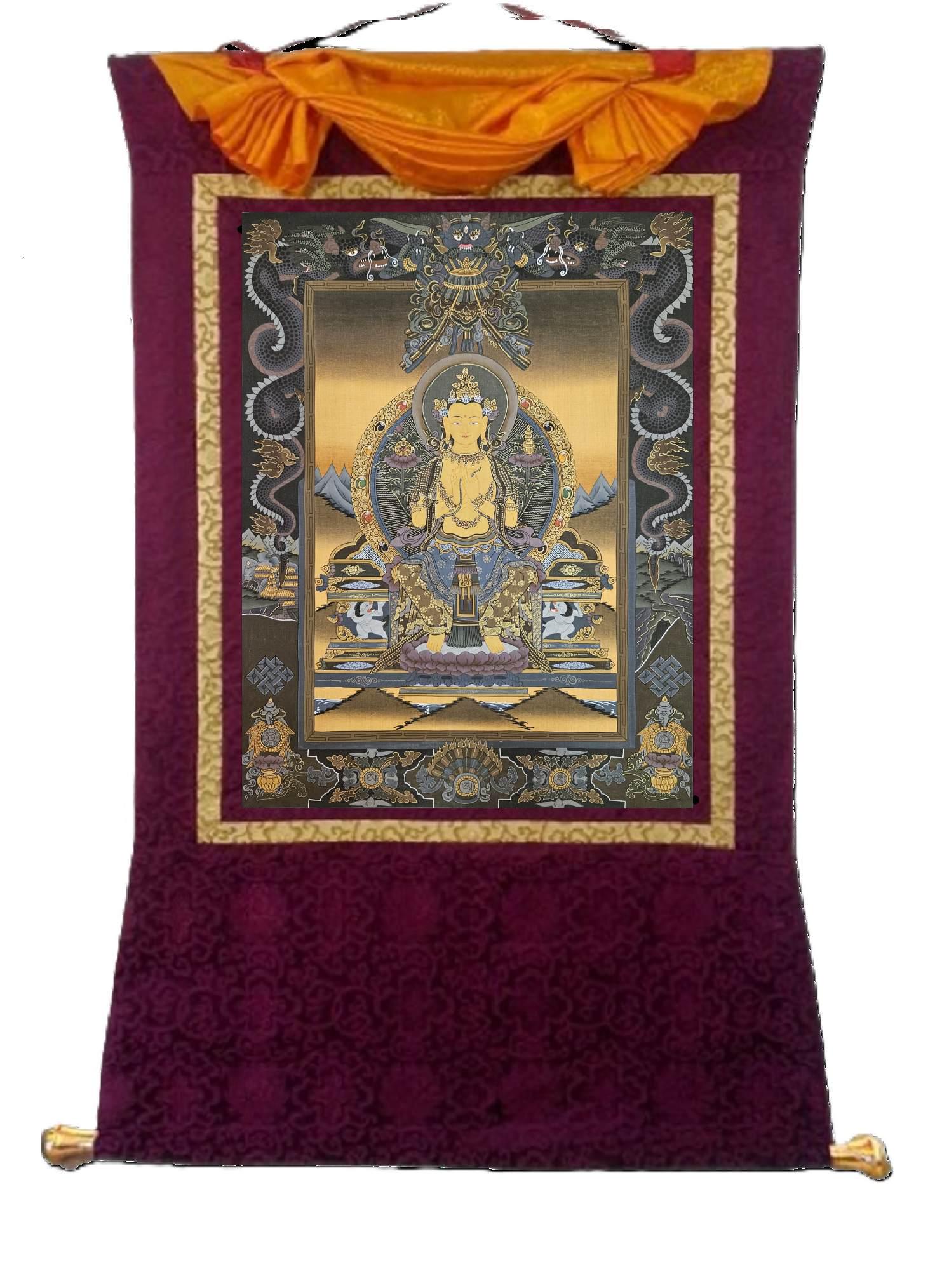 368. Maitreya (Metteyya) Buddha Thangka (Thanka). Free Brocade / Free Shipping.