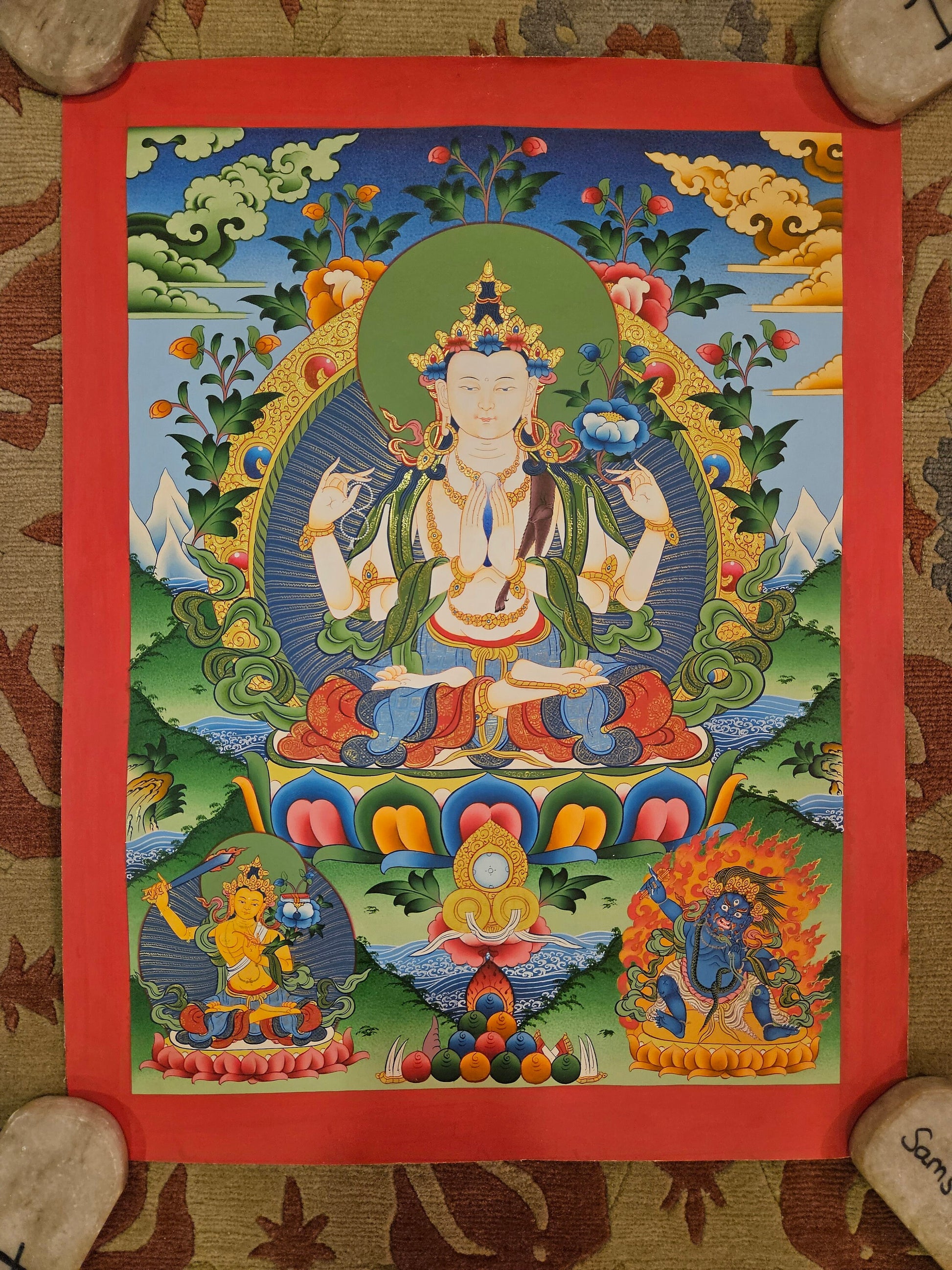 37. Chenrezig Thangka (Thanka). Free Brocade / Free Shipping.