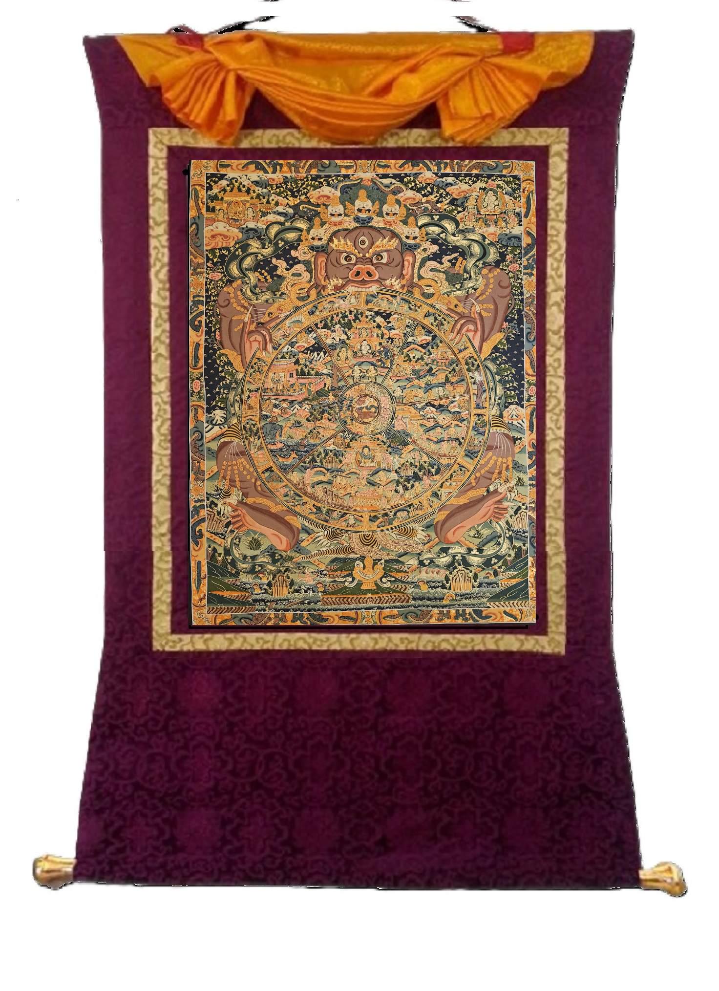 378. Large Wheel of Life (Samsara) Thangka (Thanka). Free Brocade / Free Shipping.