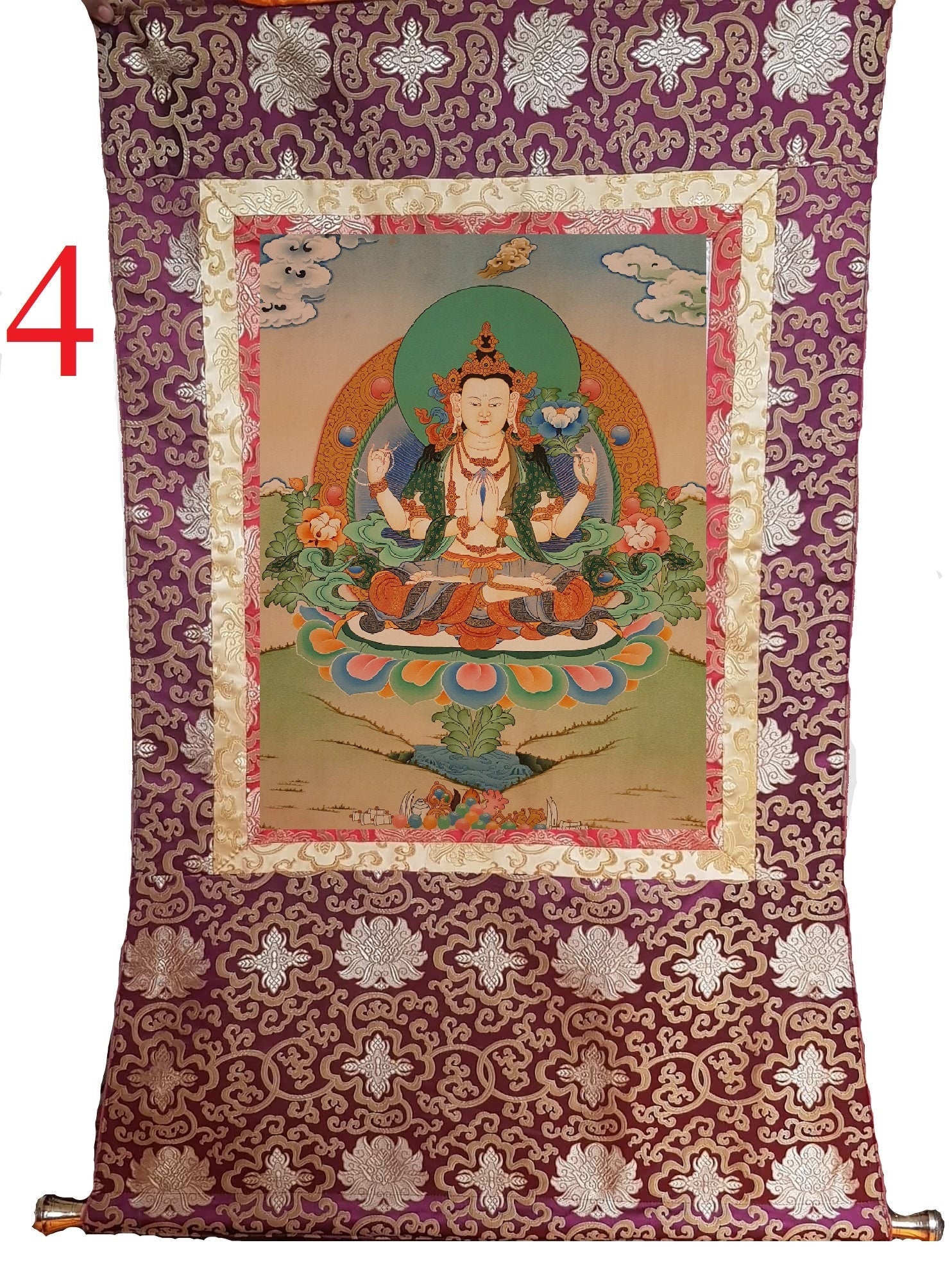 38. Chenrezig Thangka (Thanka). Free Brocade / Free Shipping.