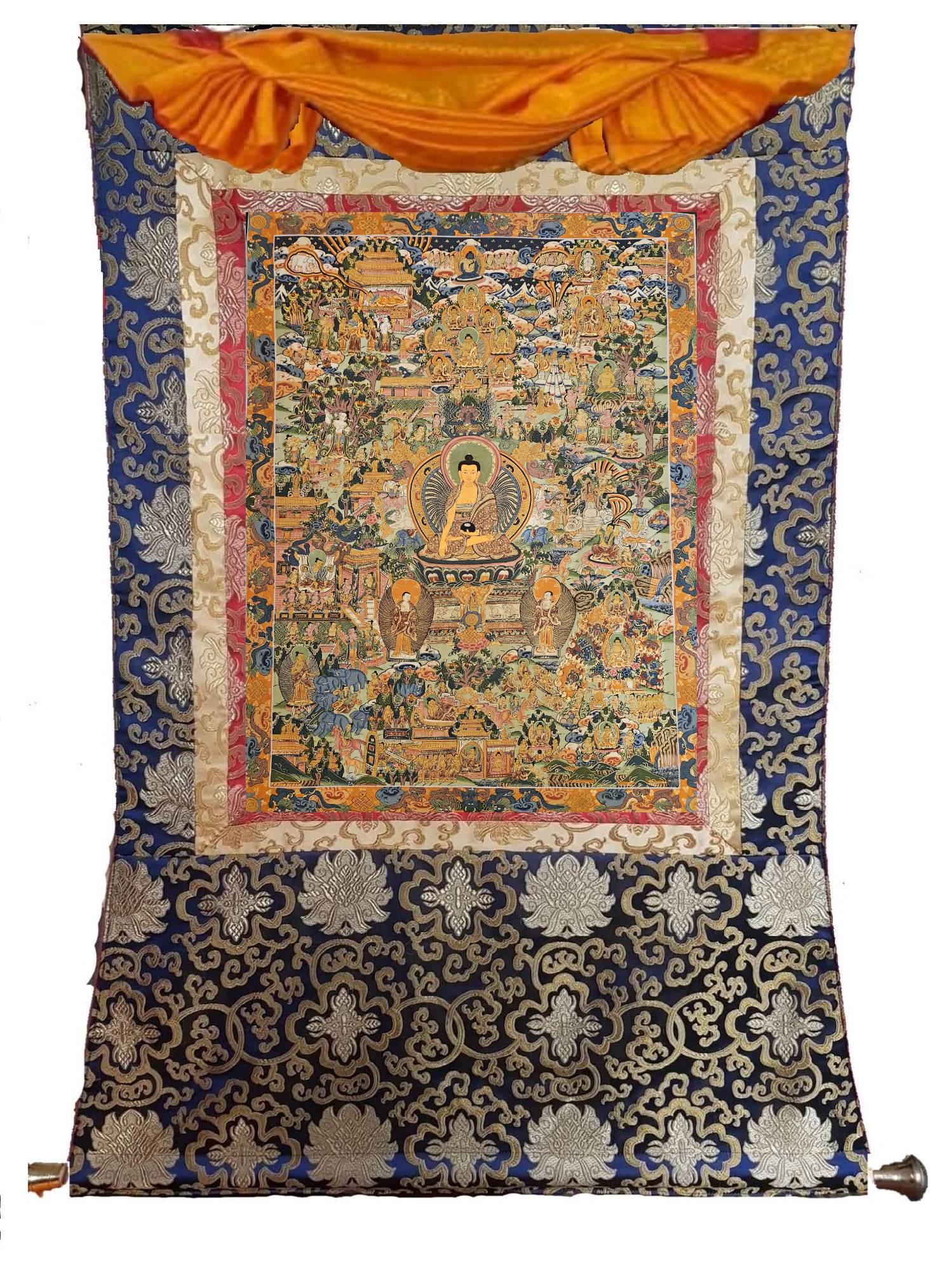 381. Buddha Life Story (Thanka) Thangka. Free Brocade / Free Shipping.