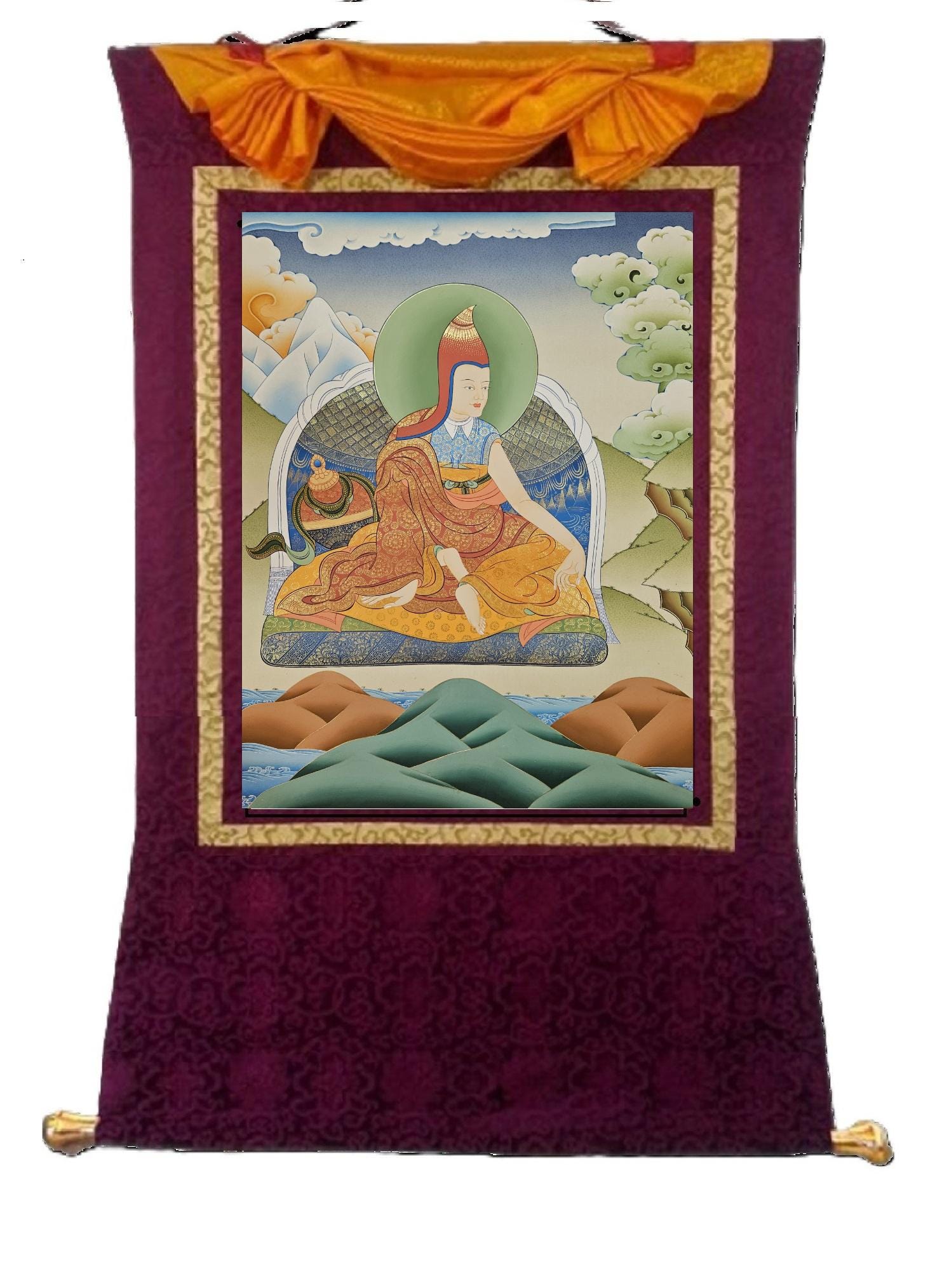 388. Shantideva Monk at Nalanda Thangka (Thanka). Free Brocade / Free Shipping.