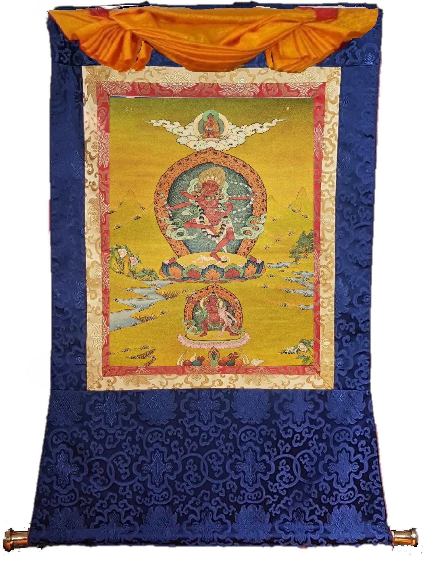 389. 20 Year Old Karma Gadri Style Kurukulla Thangka (Thanka). Free Brocade / Free Shipping.