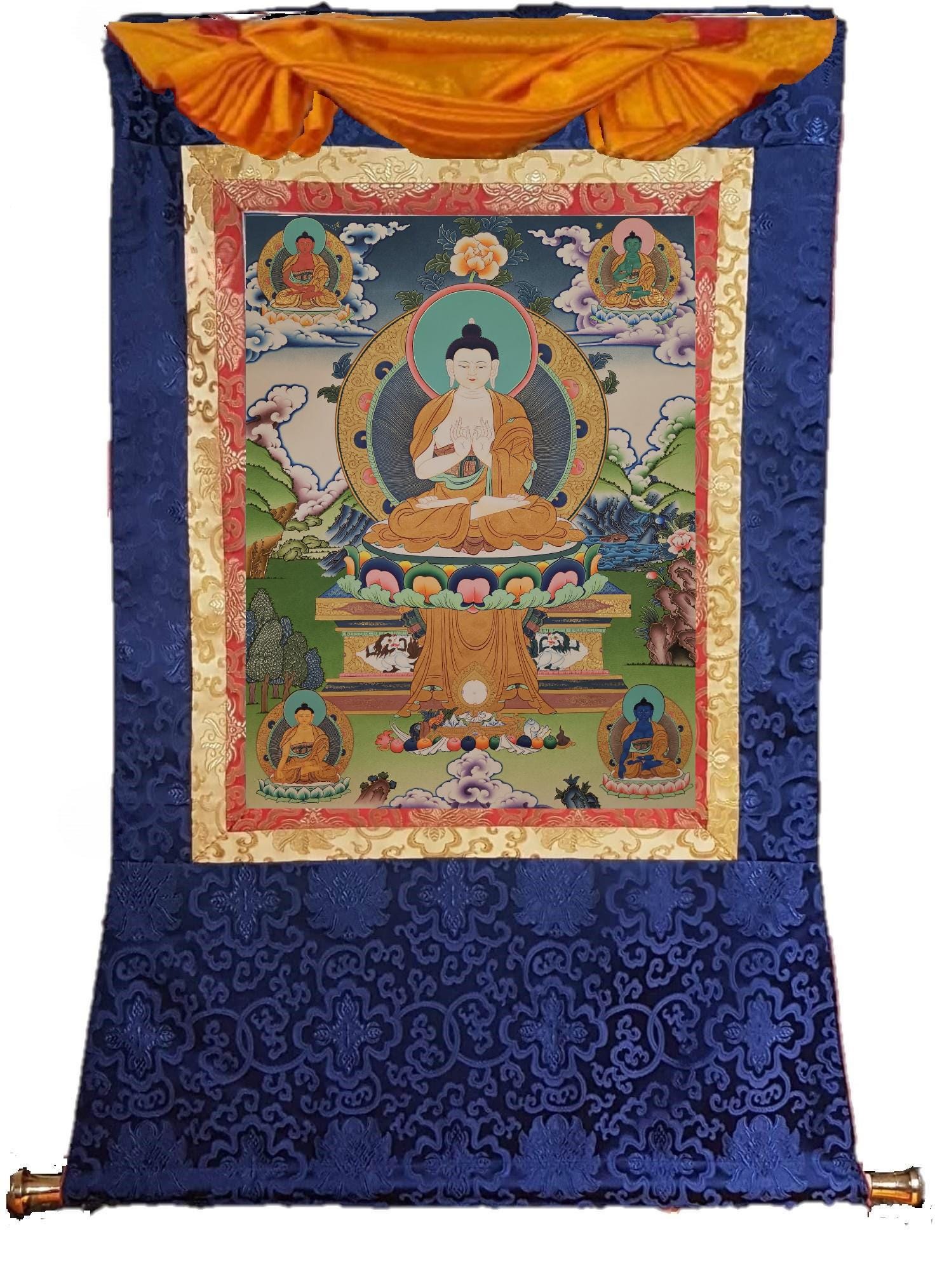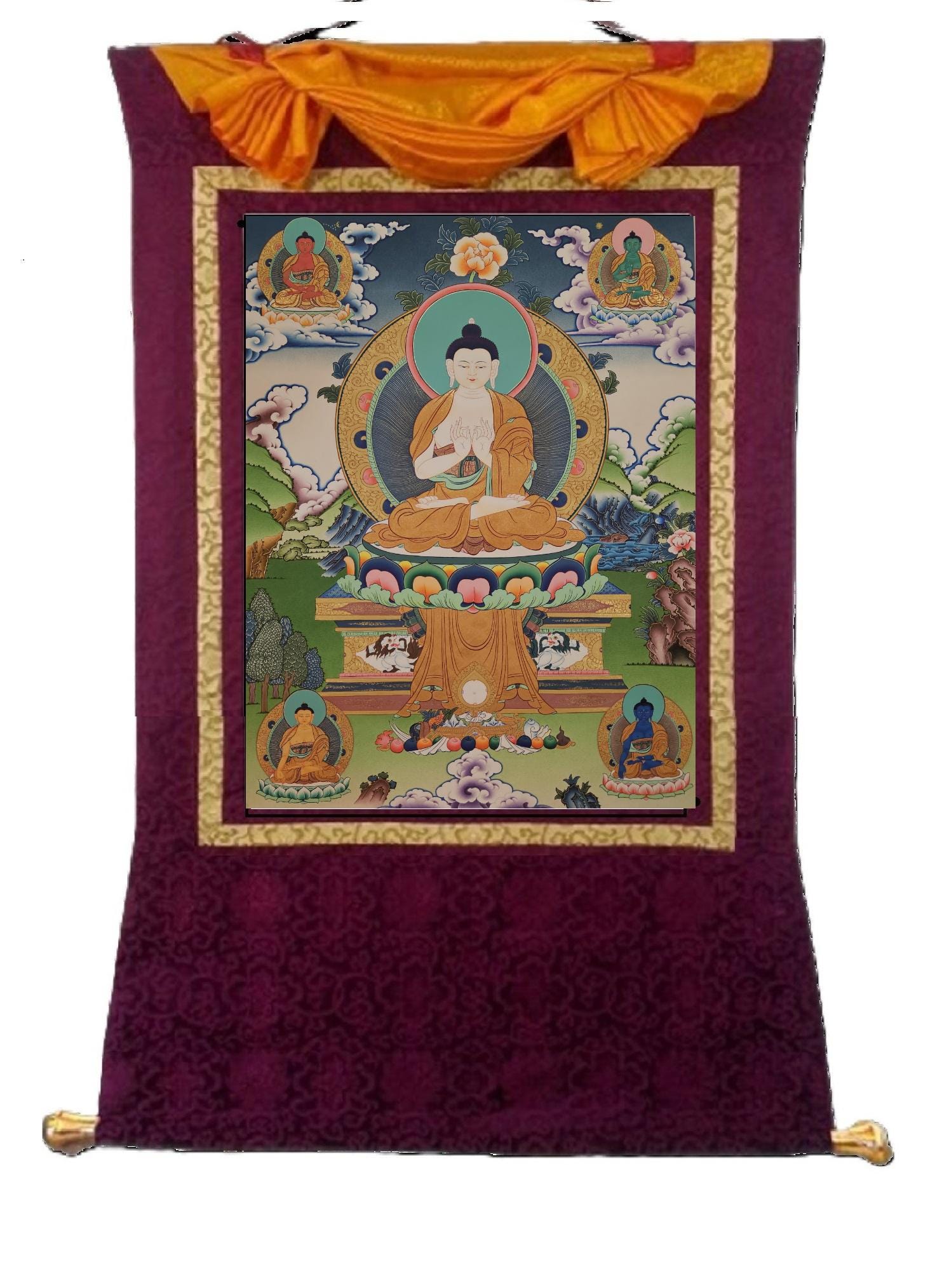 393. Five Pancha Dhyani Buddha Thangka (Thanka). Free Brocade / Free Shipping.