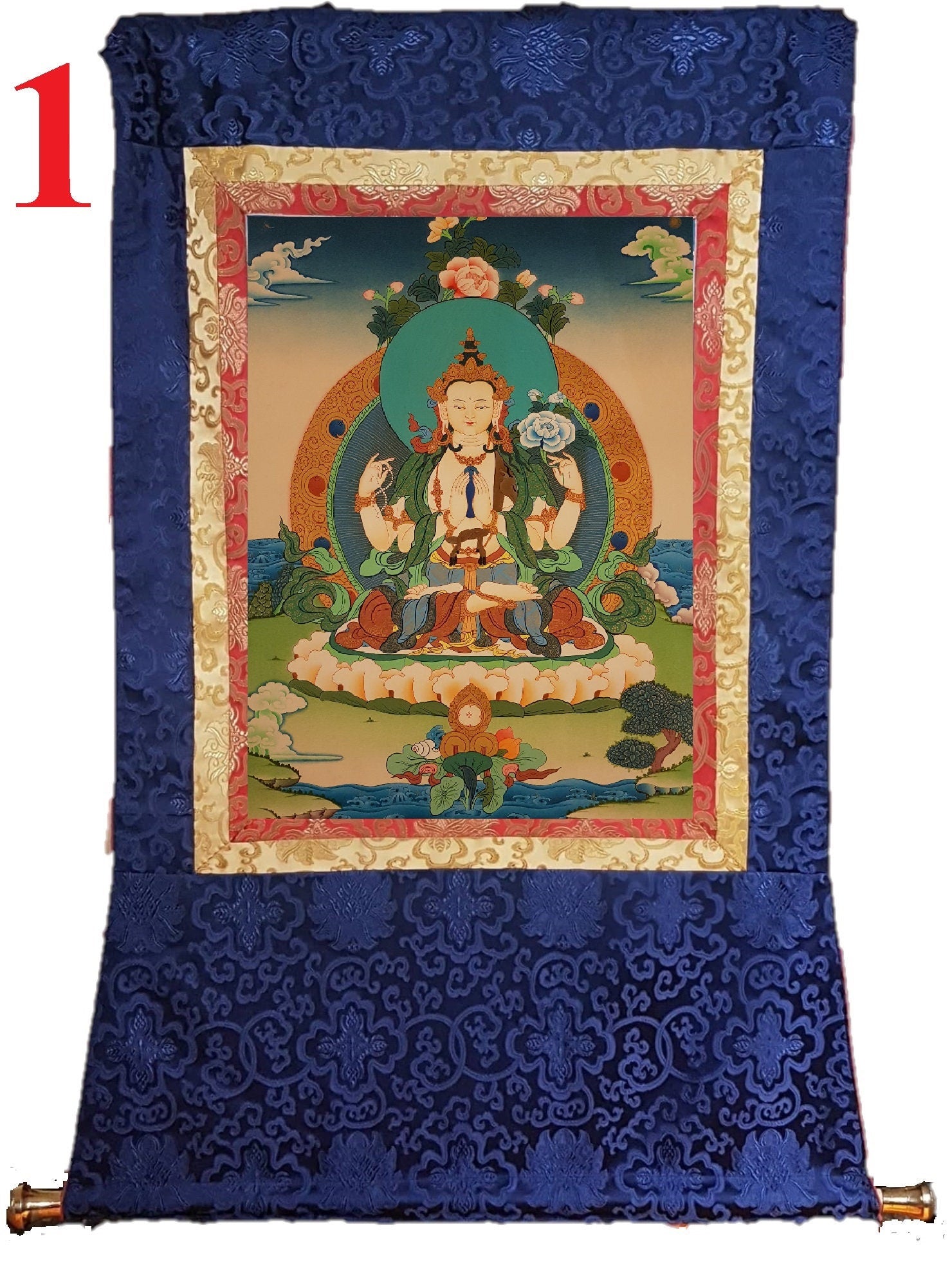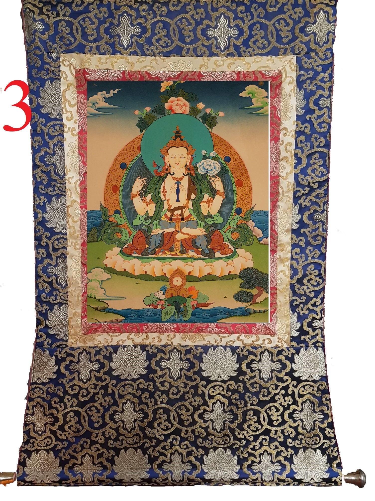 42. Chenrezig Thangka (Thanka). Free Brocade / Free Shipping.