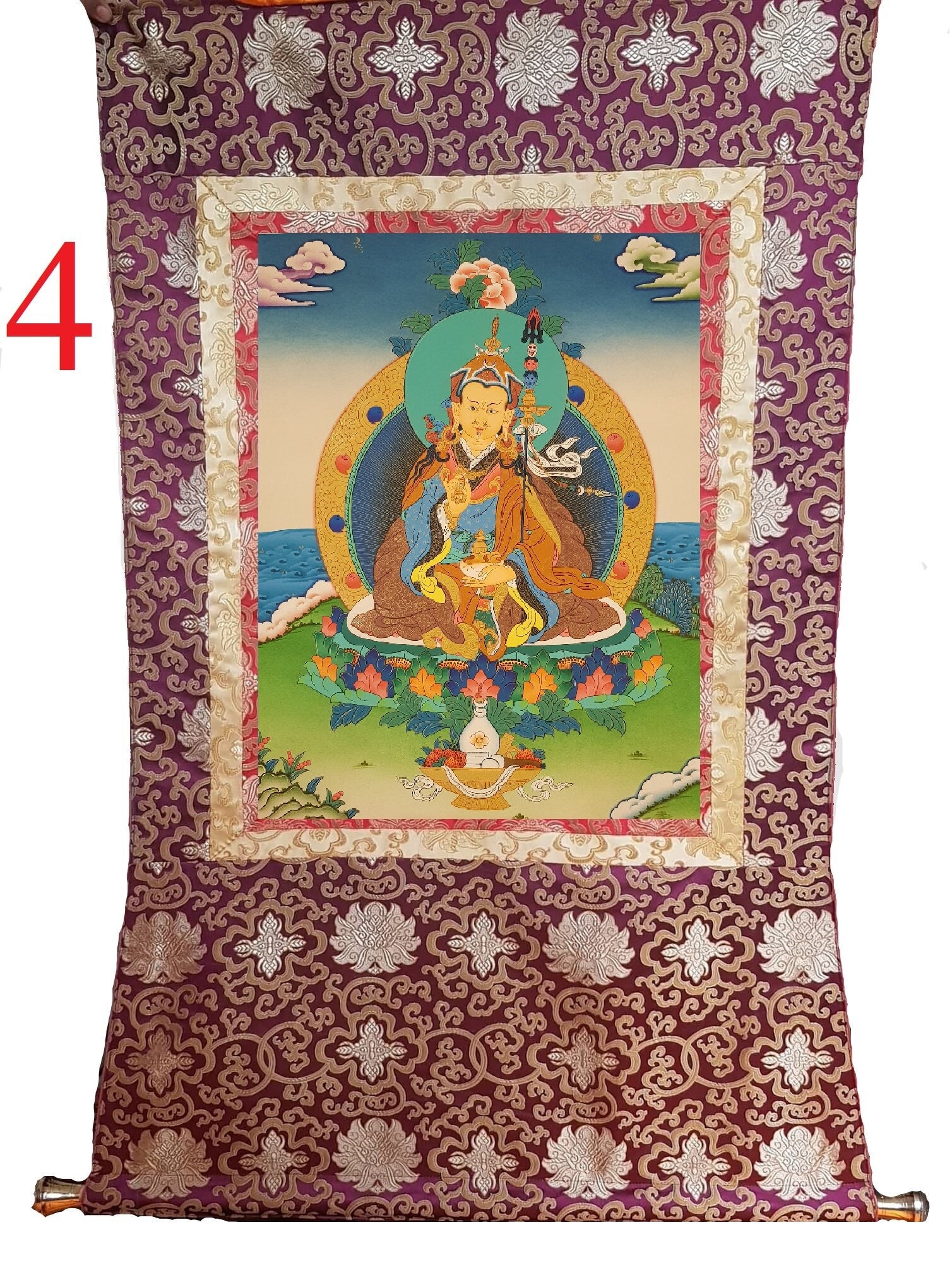 63. Guru Rinpoche Padmasambhava Thanka (Thangka). Free Brocade / Free Shipping.