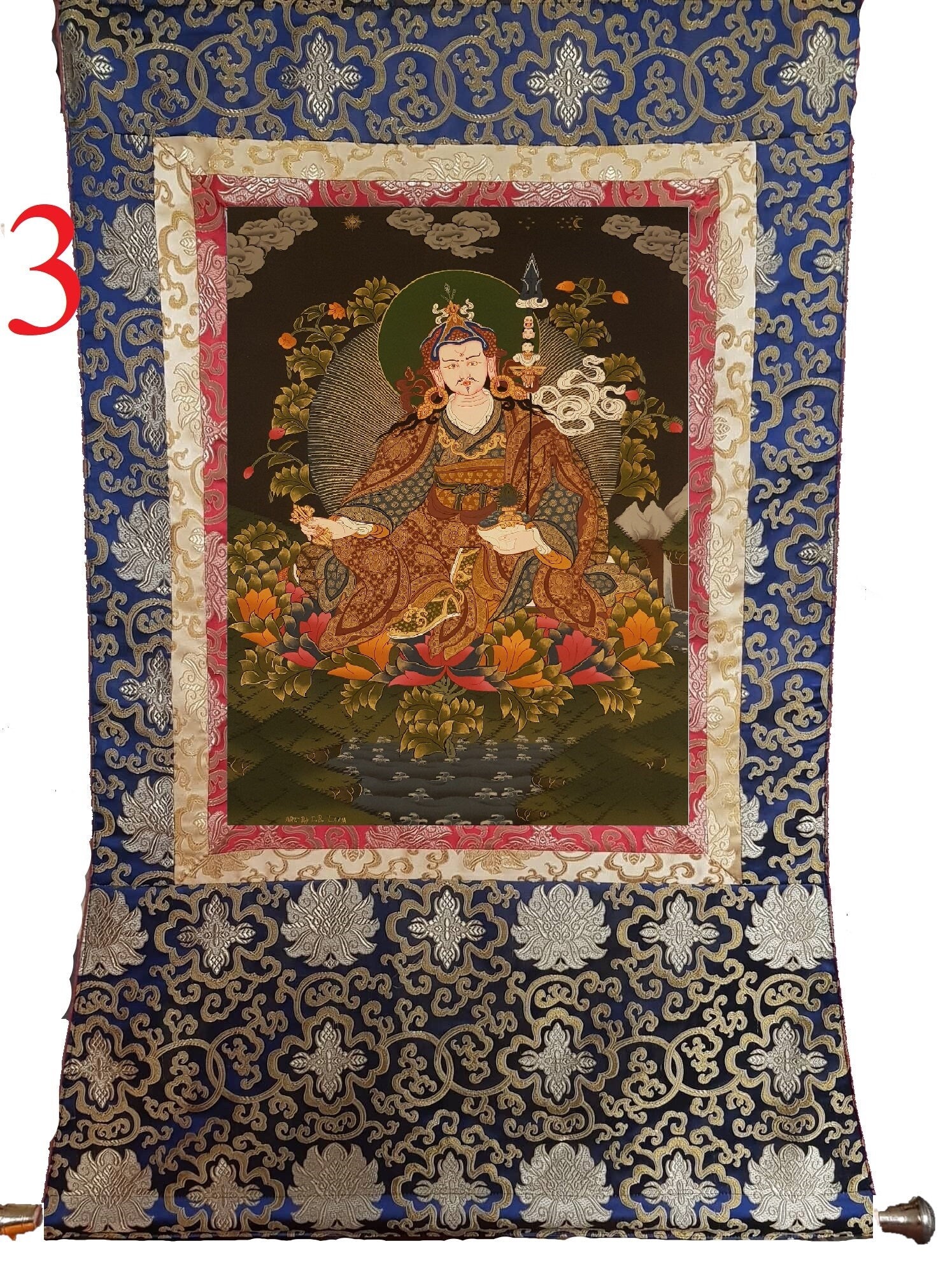 68. Guru Rinpoche Padmasambhava Thanka (Thangka). Free Brocade / Free Shipping.