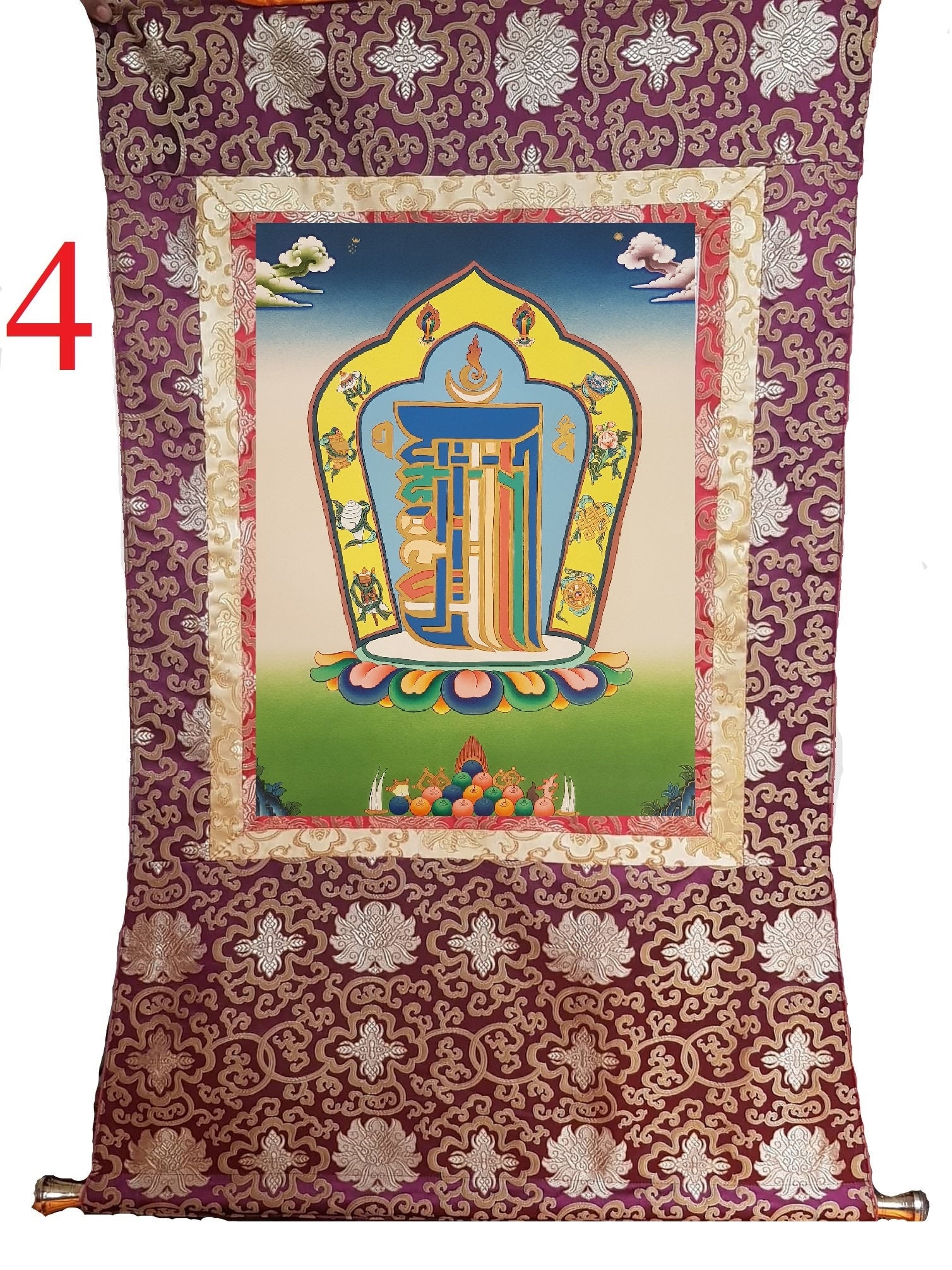 72. Kalachakra Alphabet Thangka (Thanka). Free Brocade / Free Shipping.